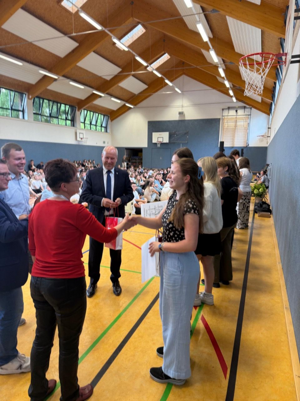 Am 23.07.2025 endete in Brandenburg das Schuljahr und so erhielten auch die Schülerinnen und Schüler unserer Schule ihre Endjahreszeugnisse. Beim feierlichen Schulmeeting, wegen des Wetters in der Turnhalle, würdigte unsere Schulleiterin Ilka Scheffel die Höhepunkte des Schuljahres und die Leistungen aller in diesem langen Schuljahr. Besonderer Höhepunkt waren die Auszeichnungen der Besten im Englischwettbewerb „Big Challenge“, der Sieger des Schulsportfestes sowie der besten Zeugnisse der Schule. Alle Schülerinnen und Schüler, die das Schuljahr mit einem Ergebnis besser gleich 1,5 abgeschlossen haben, wurden durch den Förderverein der Schule und in diesem Jahr vom Gubener Bürgermeister Fred Mahro für ihre sehr guten schulischen Leistungen geehrt. Wir danken der Schulgemeinschaft für ein erfolgreiches Schuljahr 2024/2025, wünschen allen schöne sowie erholsame Sommerferien und freuen uns auf ein Wiedersehen am 08.09.2025 zum Schuljahreseröffnungsmeeting.