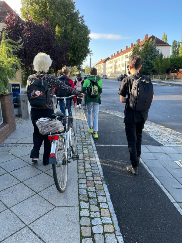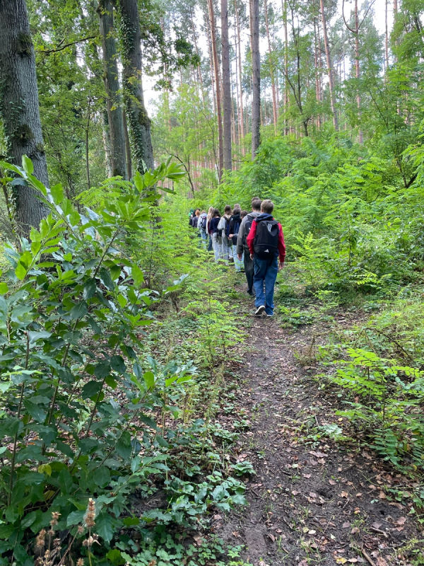Aufgrund der erfreulich hohen Anmeldezahl reichte die Kapazität jedoch nicht für alle Teilnehmenden aus. Kurzerhand wurde für die Klasse 9.3 eine Alternativwanderung zur „Kahlen Glatze“ organisiert – und auch diese hatte es in sich: Bei bestem Wetter ging es auf die abwechslungsreiche Route durch Wald, Feld, Dorf und Stadt und auch am Kaufland vorbei. Die Umgebung, die Bewegung, die frische Luft, die Gemeinschaft miteinander und der Döner verbanden uns, zumal die neuen polnischen Schüler so die Stadt besser kennenlernen konnten.