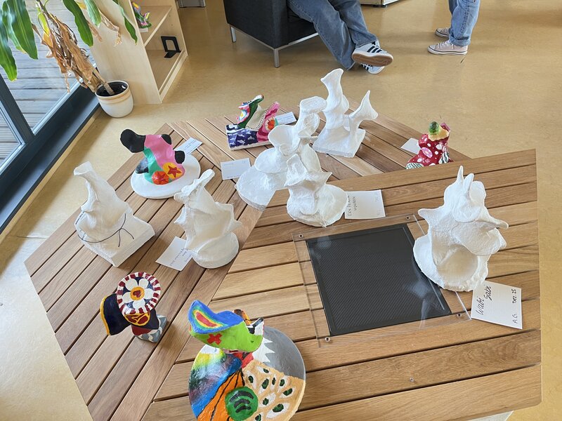 Die Werke sind ab sofort in der Stadtbibliothek zu sehen. Besucherinnen und Besucher können die Skulpturen auch käuflich erwerben: Der Erlös geht an den Förderverein des Pestalozzi‑Gymnasiums und unterstützt künftige Schulprojekte.