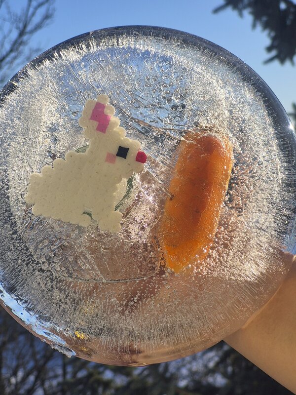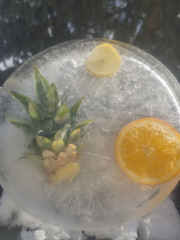 In unserem ersten Beitrag der neuen Reihe zeigen wir eine besondere Eiskunst. In dieser Arbeit von der Schülerin Mokhichekhra aus der 7.1 sind ein Osterhase und sommerliche Zitrusfrüchte in klarem Eis eingefroren.
