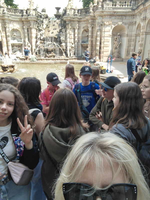 Am Mittwoch trafen wir uns alle auf dem Bahnhof und fuhren nach Dresden. Hier unternahmen wir eine Stadtführung und bewunderten die historischen Bauten wie den Zwinger, den Fürstenzug aus Meißener Porzellan und die Frauenkirche. Dabei erfuhren wir von der gemeinsamen Geschichte Polens und Sachsen, da Kurfürst August der Starke auch König von Polen war. Danach hatten wir Freizeit und konnten einkaufen gehen, ehe wir alle müde nach Hause gefahren sind.