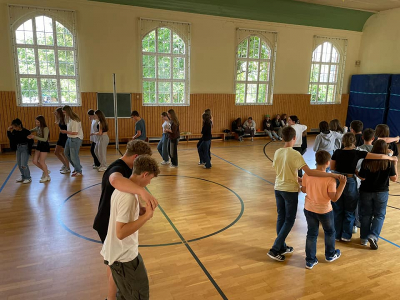Zum Abschied wurde am Donnerstag in der Turnhalle unseres Gymnasiums gefeiert und gemeinsam viel getanzt. Dann nahmen wir Abschied und unsere Gäste fuhren nach Hause. Es waren ereignisreiche Tage und wir haben viele neue Kontakte zu unseren Partnerschülerinnen und -schülern geknüpft.